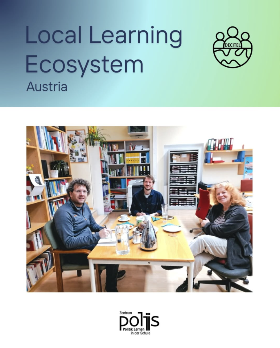As part of the DeCiTeL project, Zentrum polis – Austrian Centre for Citizenship Education in Schools, met with Prof. Roland Trabe (University College of Teacher Education Vienna, Pädagogische Hochschule Wien, and European Union Studies – Jean Monnet Teacher Training Programme) to explore potential areas of cooperation with the Local Learning Ecosystem (LLE) Bildungsgrätzl VerteilerKREIS.
